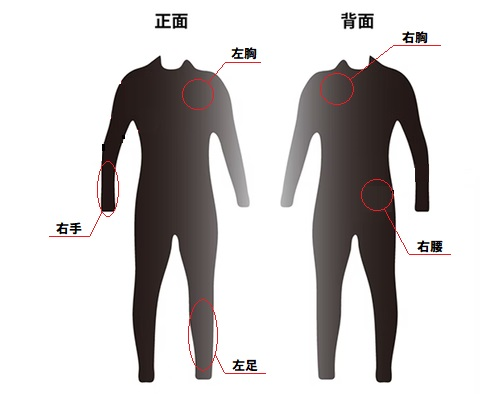 つける場所は、下記の画像から基本2箇所、希望がある方は注文時にお伝えください。